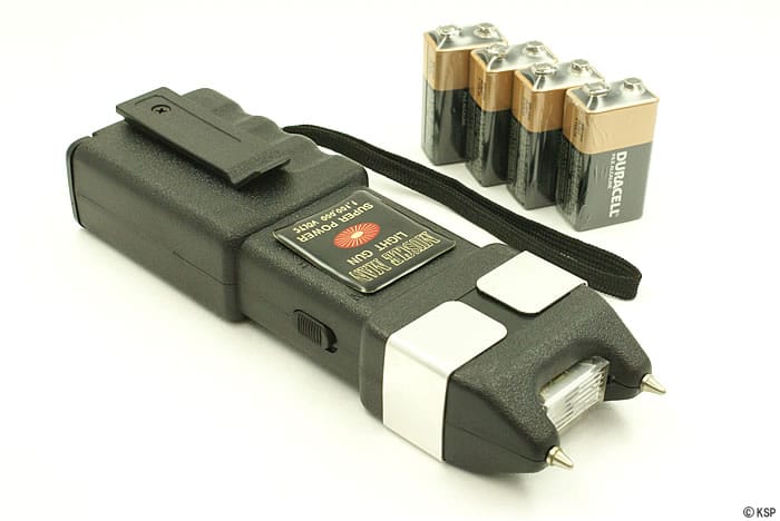 このスタンガンは威嚇スパークは弱めであり、しかも側面電極しか放電しませんが、その変わりにヘッド部に搭載されたストロボは圧倒的な目くらまし効果を発揮します。特に夜間や暗い場所での威力はてきめんです。威嚇の際には積極的にこのストロボを使用したいものです。また、こちらは先月の特徴として、特殊警棒や催涙スプレーとセットになったSG-110Sプロセット注文が特に増えました。